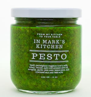 Mark's Kitchen Pesto is made with the finest ingredients available. We use PARMIGIANO REGGIANO DOP (the best Parmesan cheese in the world) or for our Vegan line our own Vegan Parmesan (raw cashews, nutritional yeast, salt and garlic), the freshest basil (grown under the sun in Hawaii) or for our dandelion greens superfood pesto, organic dandelion greens from Lady Moon organics, baby arugula, first pressed virgin olive oil from a small family farm in Lucca, Italy, domestic grown garlic, fresh squeezed domestic lemon juice, fresh pine nuts, and sea salt. While Mark's kitchen pesto costs more than other pestos on the market, one taste of our product will show you why. Quality costs, and we refuse to cut a single corner in the production of our delicious pesto.